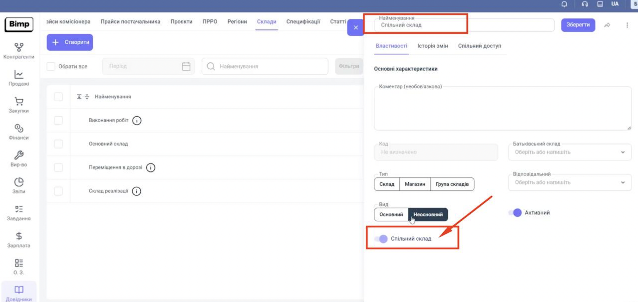 Увімкніть перемикач «Спільний склад».