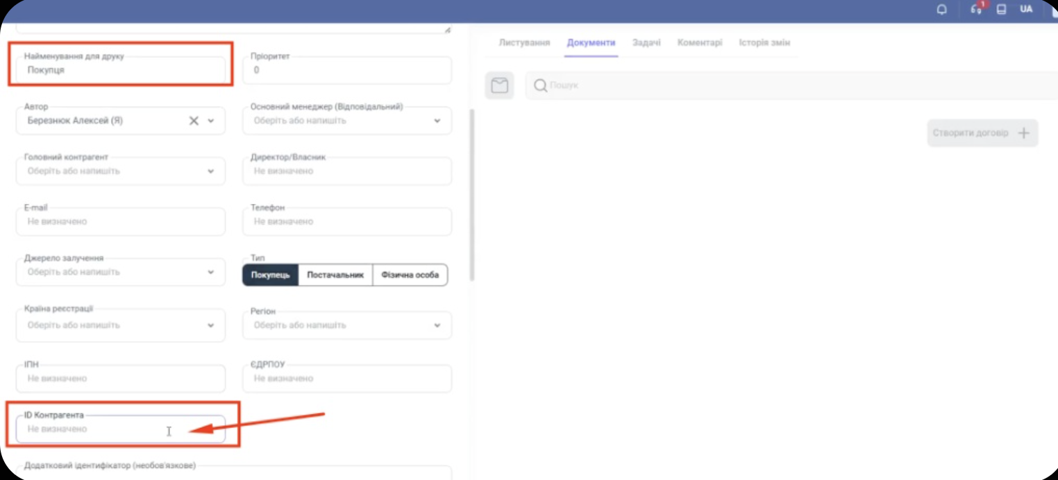 Щоб системи «побачили» одна одну, потрібно прописати унікальні ID компаній у картках контрагентів.