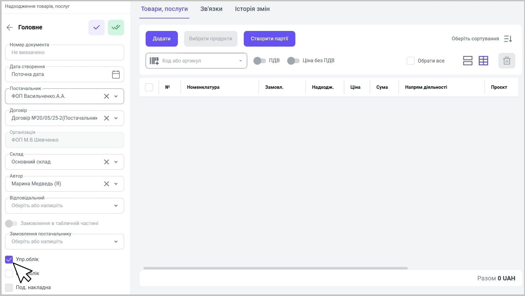 Спосіб 2. Накопичення витрат через "Надходження товарів і послуг"