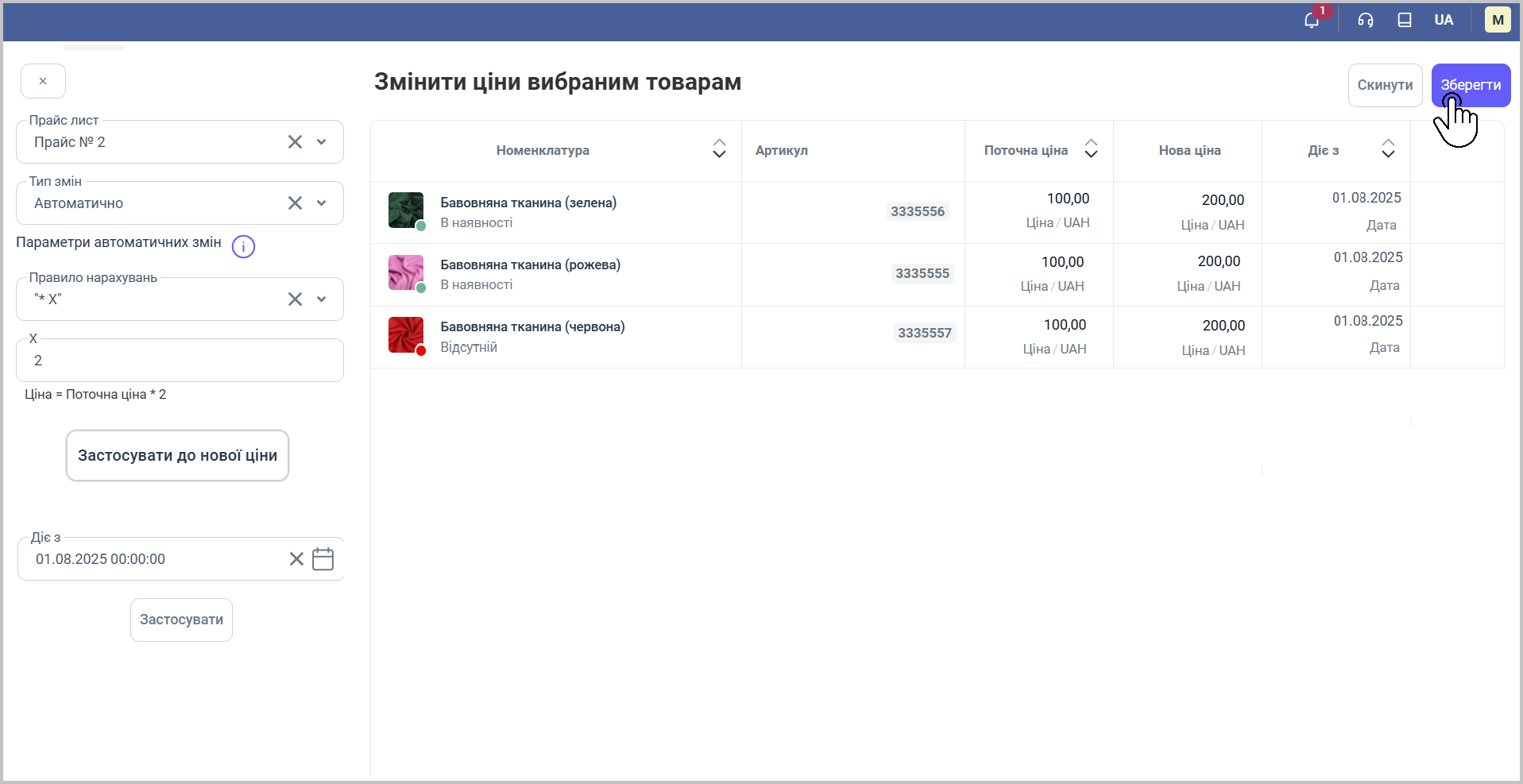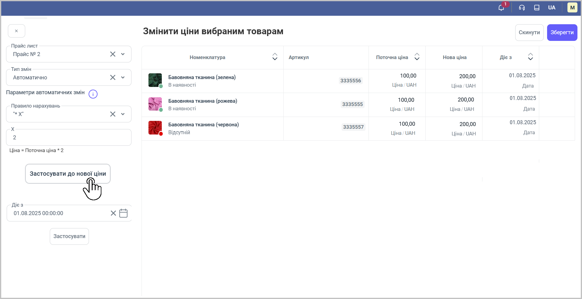 🔹Натисніть кнопку "Застосувати до нової ціни".