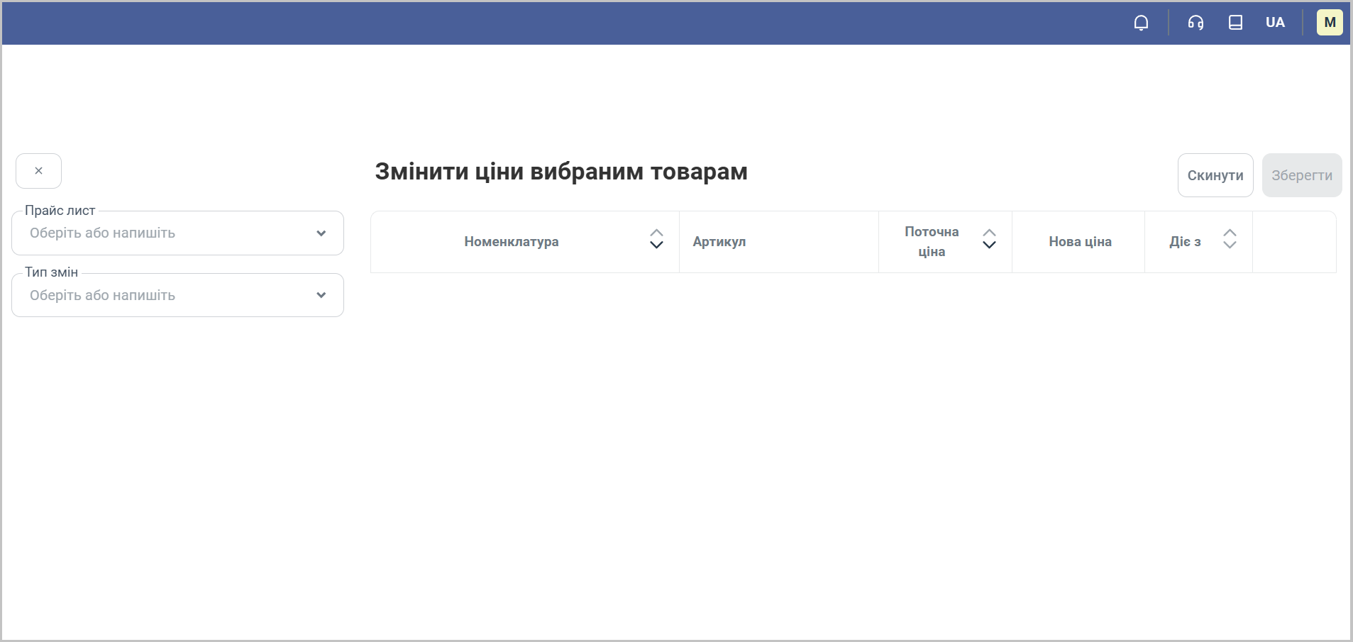 Крок 2. Заповнення форми зміни цін