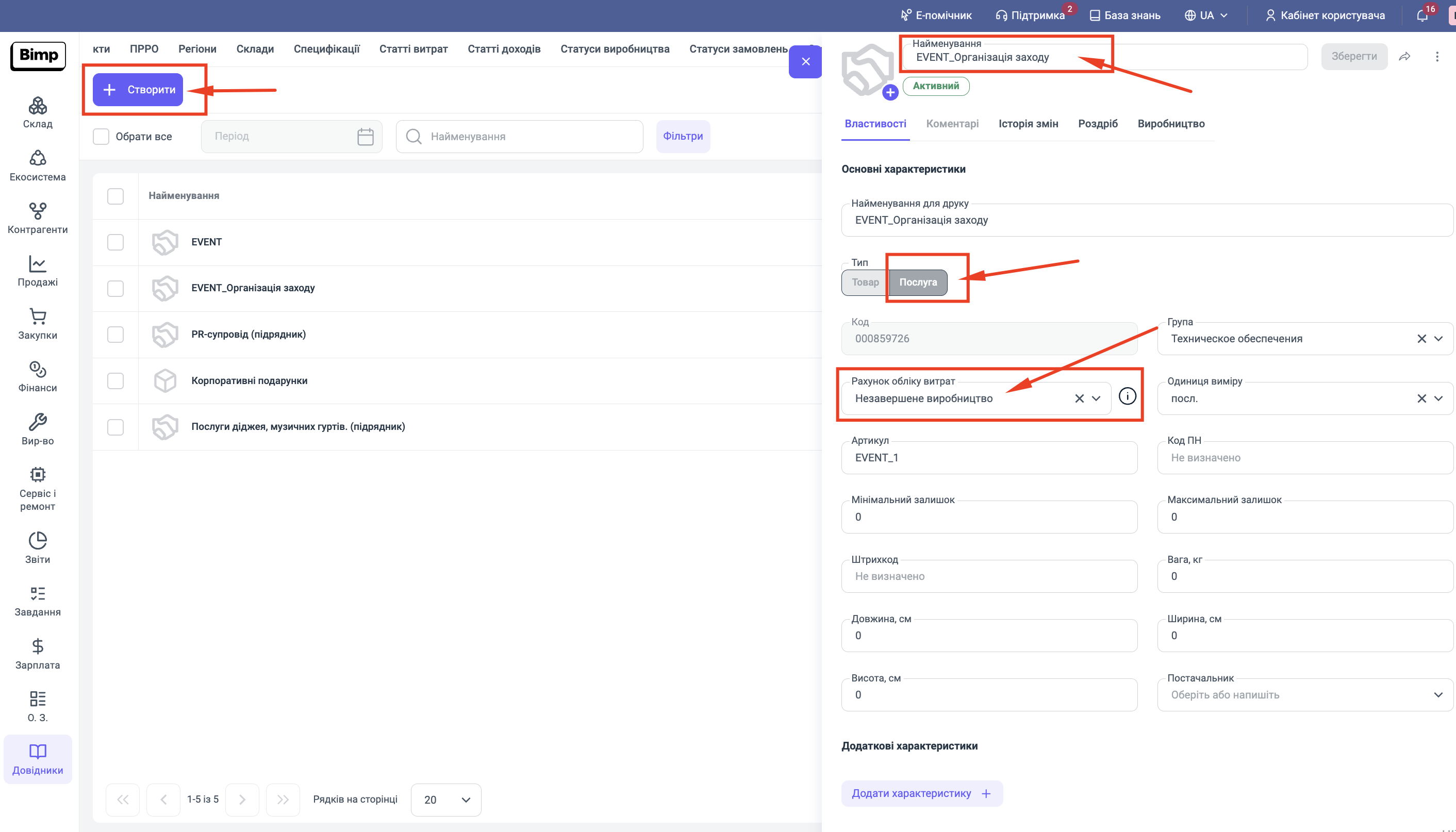 Перейдіть у довідник "Товари та Послуги" (у модулі Bimp > Довідники).