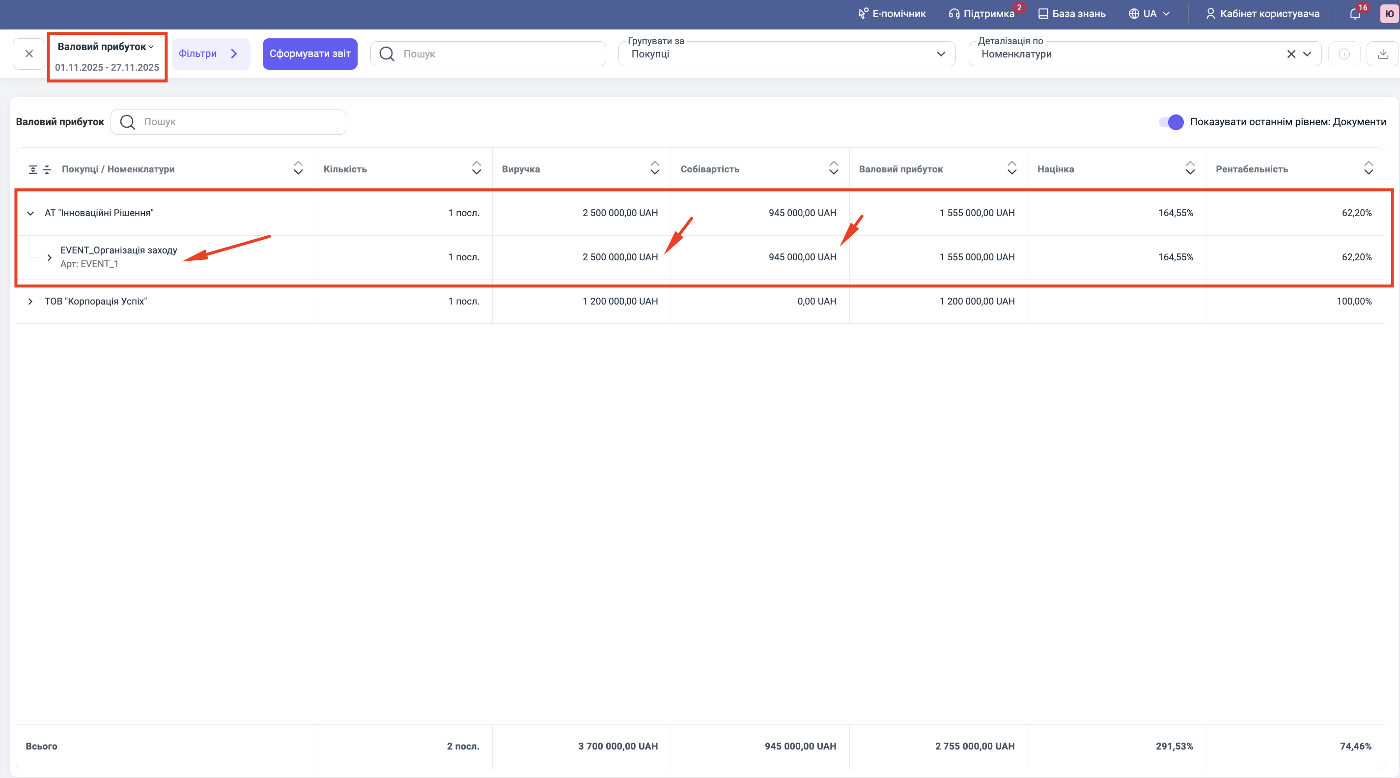📊 Фінальна перевірка: Сформуйте звіт "Валовий прибуток". У ньому ви зможете побачити кінцеву собівартість наданих послуг та чистий прибуток.