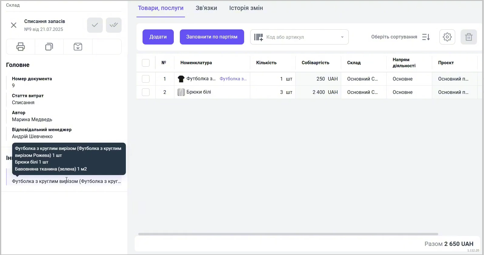 🔹У полі "Відповідальний менеджер" вказано співробітника, який сканував штрихкод, а у полі "Автор" - співробітника, з акаунта якого створено документ.