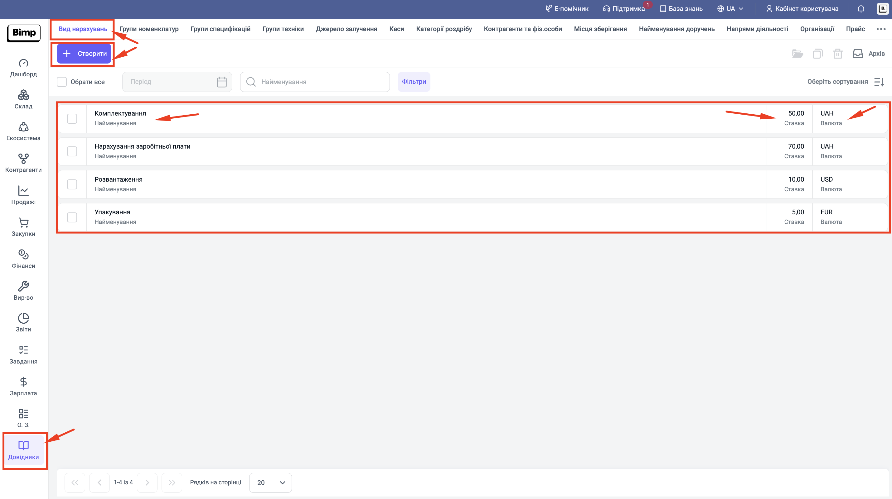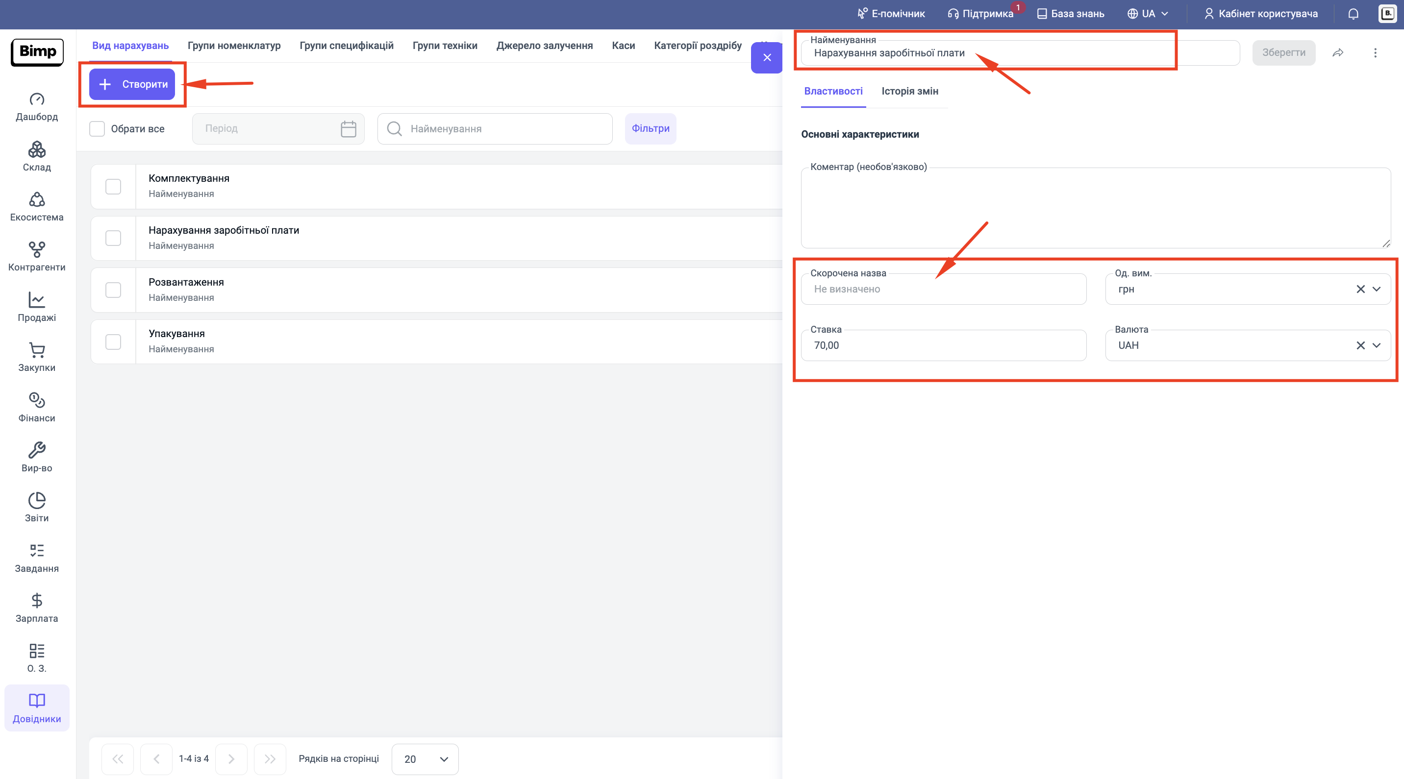 Практичний кейс: У вас є комірник, який отримує фіксовану ставку 30000 грн/місяць. Але також у вас є пакувальник, який отримує 50 грн за кожне зібране замовлення ("Комплектування"). А фрілансеру-перекладачу ви платите 10 USD за сторінку. Всі ці розцінки вносяться саме в цей довідник, щоб потім швидко призначати їх співробітникам.