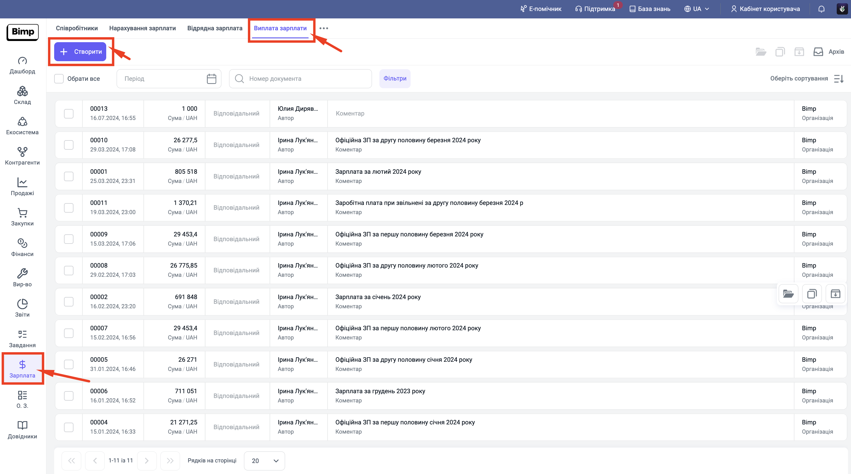 Відкрийте вкладку Виплата зарплати.