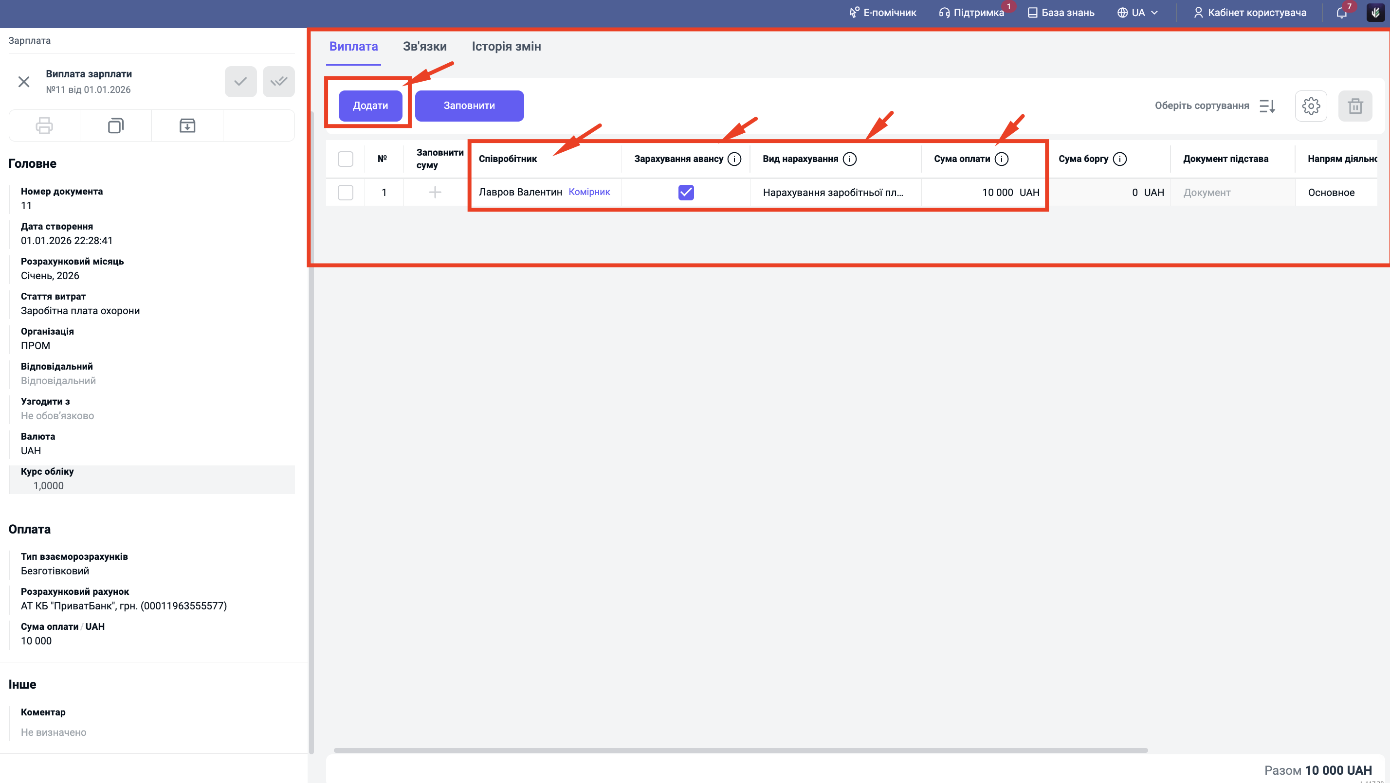 Крок 4. Додавання співробітника та Аванс