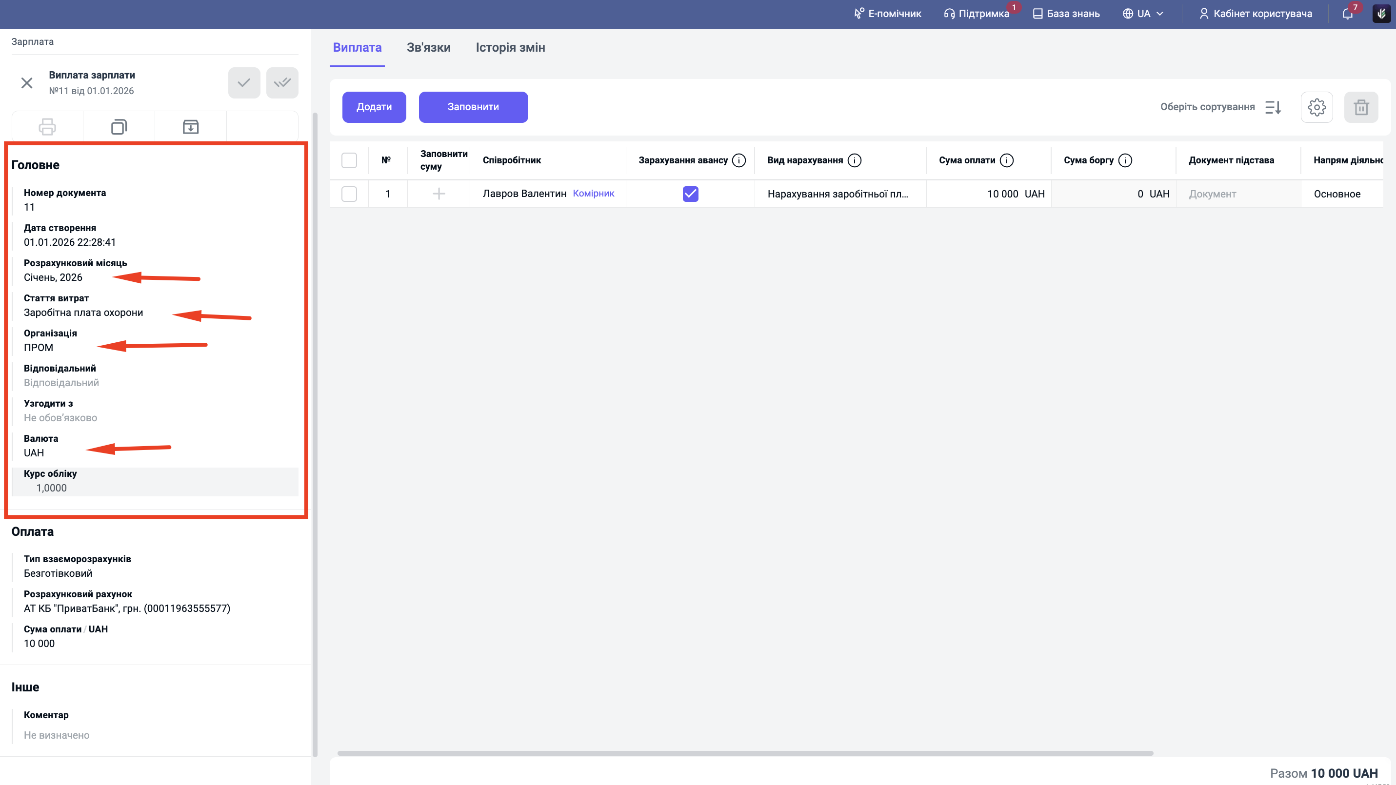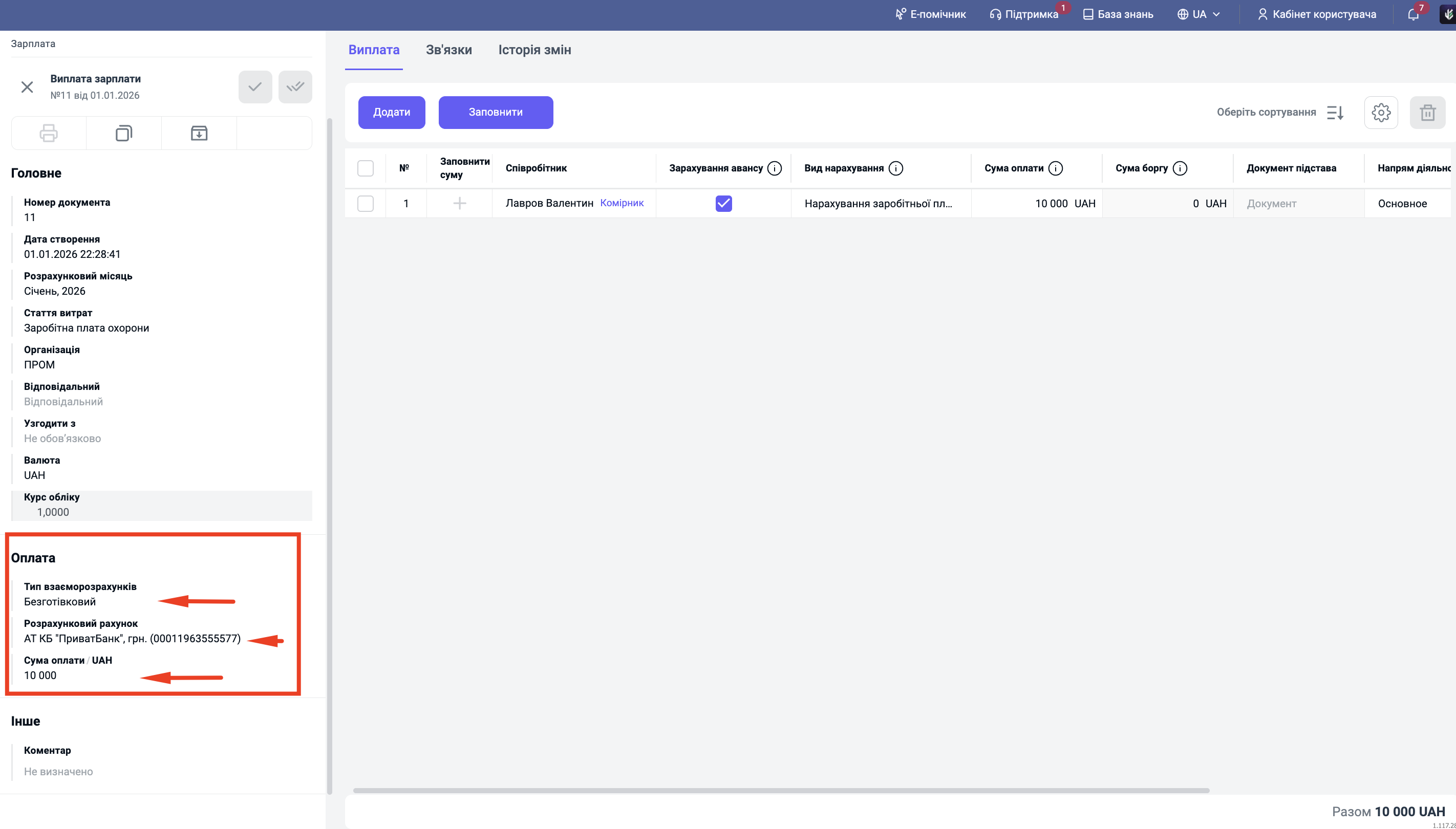 Практичний кейс: Сьогодні 15 січня. Комірник Лавров Валентин просить аванс 5 000 грн. Зарплата за січень ще не нарахована (бо місяць не закінчився). Бухгалтер створює виплату з галочкою "Аванс". Результат: