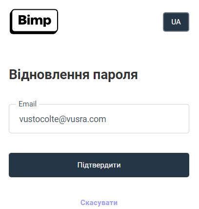 Для відновлення пароля доступу до облікового запису Bimp виконайте наступні дії: